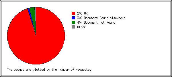 #reqs: status code -----: ----------- 20210: 200 OK 86: 206 Partial content 54: 301 Document moved permanently 225: 302 Document found elsewhere 19: 304 Not modified since last retrieval 639: 404 Document not found