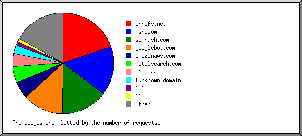 #reqs: %bytes: organization -----: ------: ------------ 4022: 4.69%: ahrefs.net 3142: 20.22%: msn.com 3019: 3.31%: semrush.com 2636: 21.33%: googlebot.com 1146: 0.80%: amazonaws.com 1028: 0.01%: petalsearch.com 853: 0.42%: 216.244 577: 0.52%: [unknown domain] 231: 0.05%: 121 225: 0.61%: 112 187: 2.32%: shawcable.net 186: 2.44%: telus.net 184: 0.15%: dodo.net.au 175: 1.47%: google.com 160: 0.03%: 118 152: 0.21%: hwclouds-dns.com 146: 30.82%: 216.73 146: 0.05%: 116 126: 0.04%: 211.235 114: 0.02%: 58 1860: 10.46%: [not listed: 193 organizations]