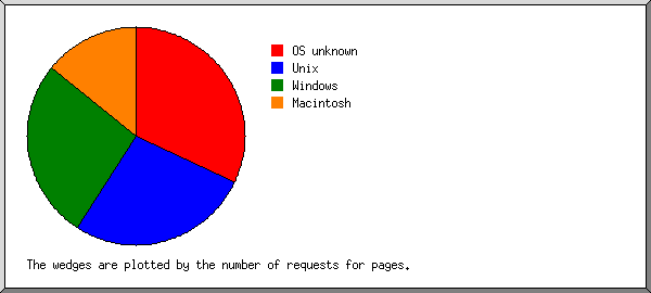#: #reqs: #pages: OS --: -----: ------: -- 1: 8033: 119: OS unknown 2: 4241: 101: Unix : 4237: 101: Linux : 3: 0: Other Unix : 1: 0: BSD 3: 1947: 100: Windows : 1738: 71: Windows NT : 101: 27: Unknown Windows : 100: 1: Windows XP : 4: 1: Windows ME : 1: 0: Windows CE : 2: 0: Windows 98 : 1: 0: Windows 2000 4: 883: 53: Macintosh 5: 5209: 0: Known robots 6: 1: 0: OS/2